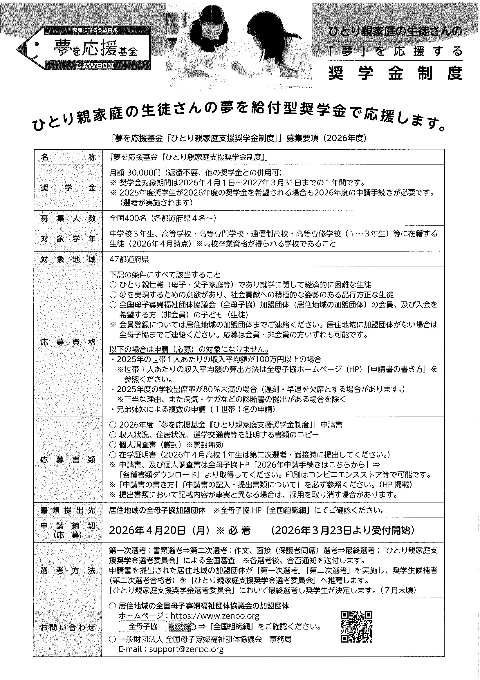 夢を応援基金 『ひとり親家庭支援奨学金制度』