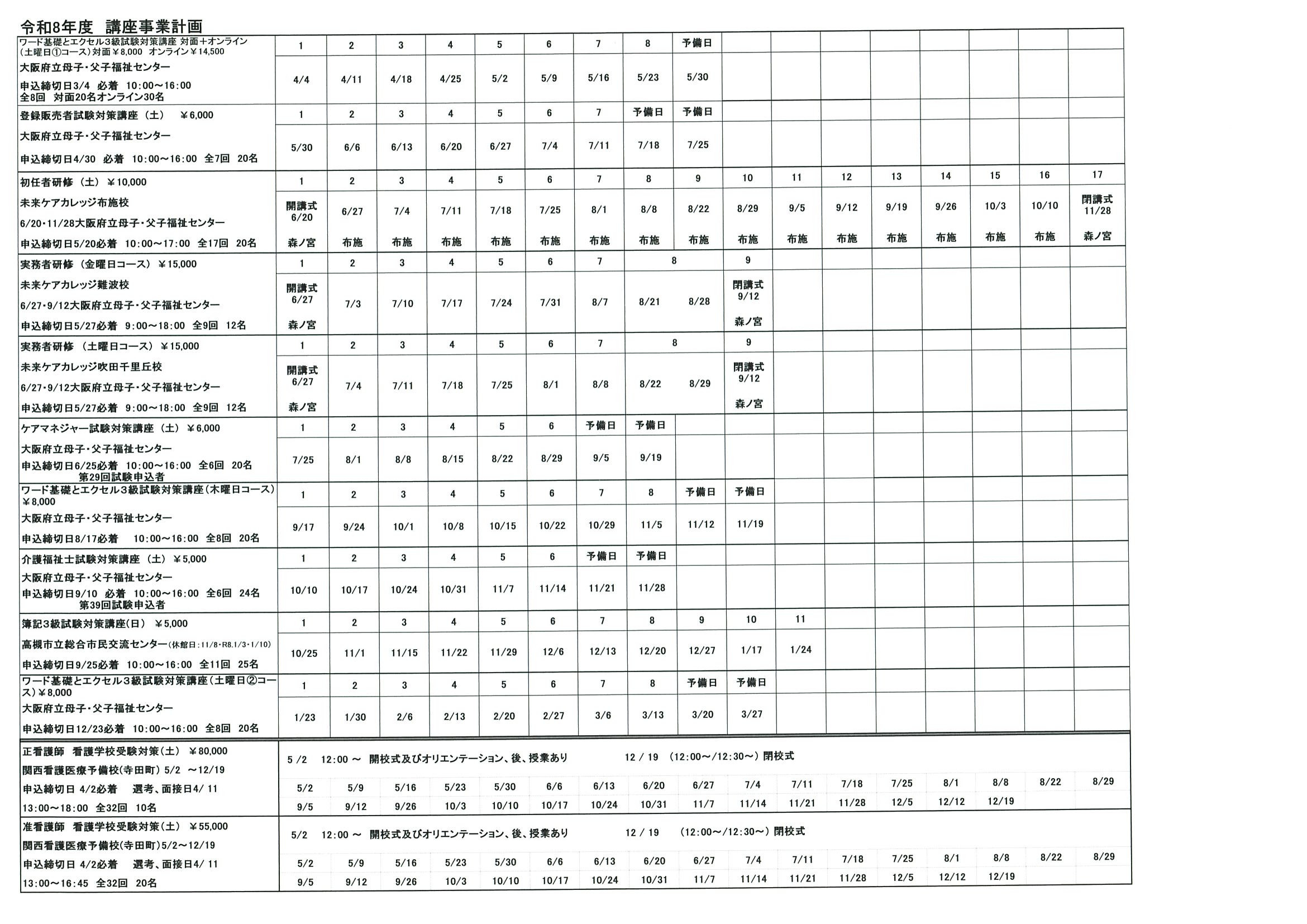 令和8年度 講座事業計画書はこちらにてご確認ください