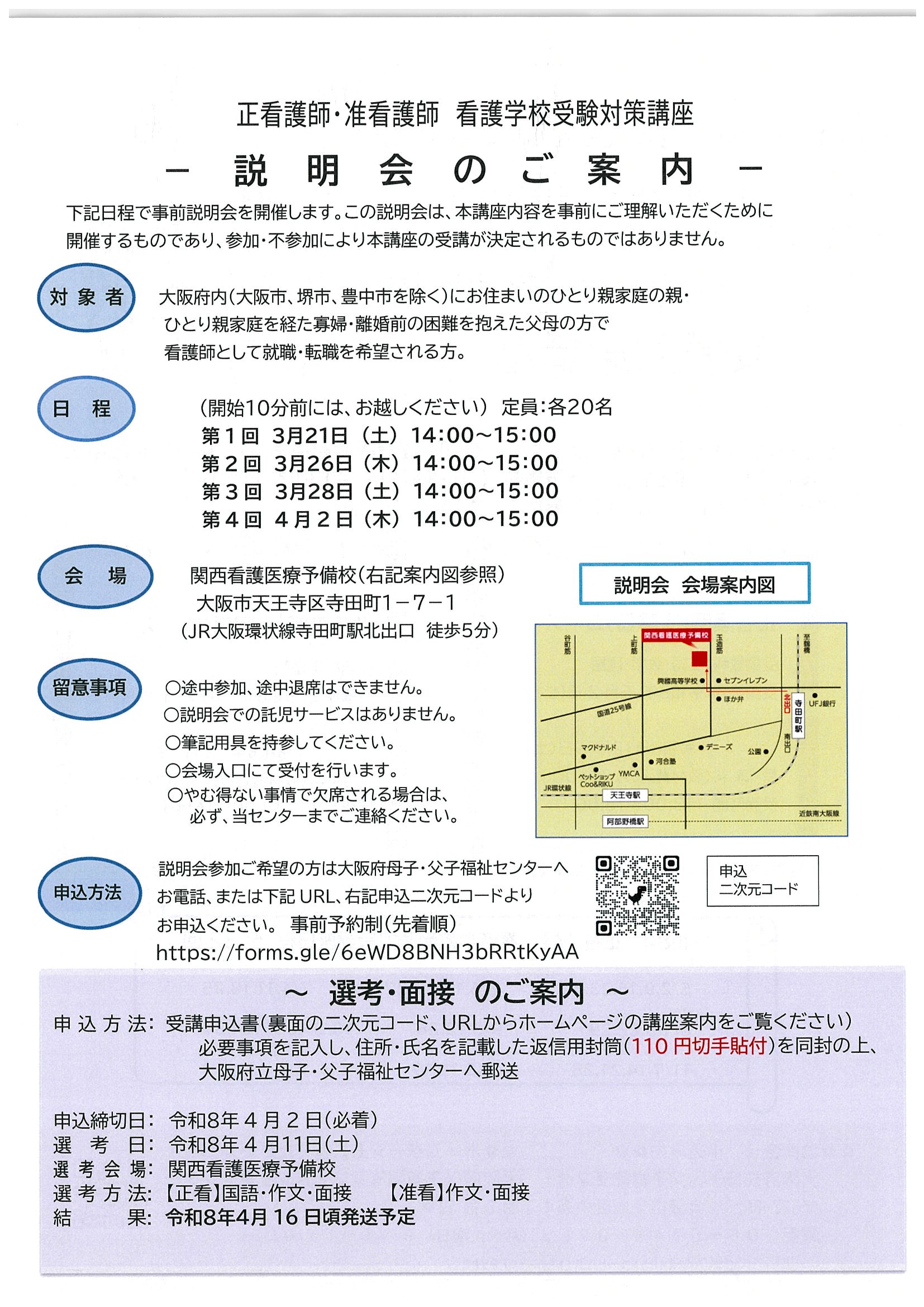 申込はお電話 大阪府立母子・父子福祉センター06-6748-0263