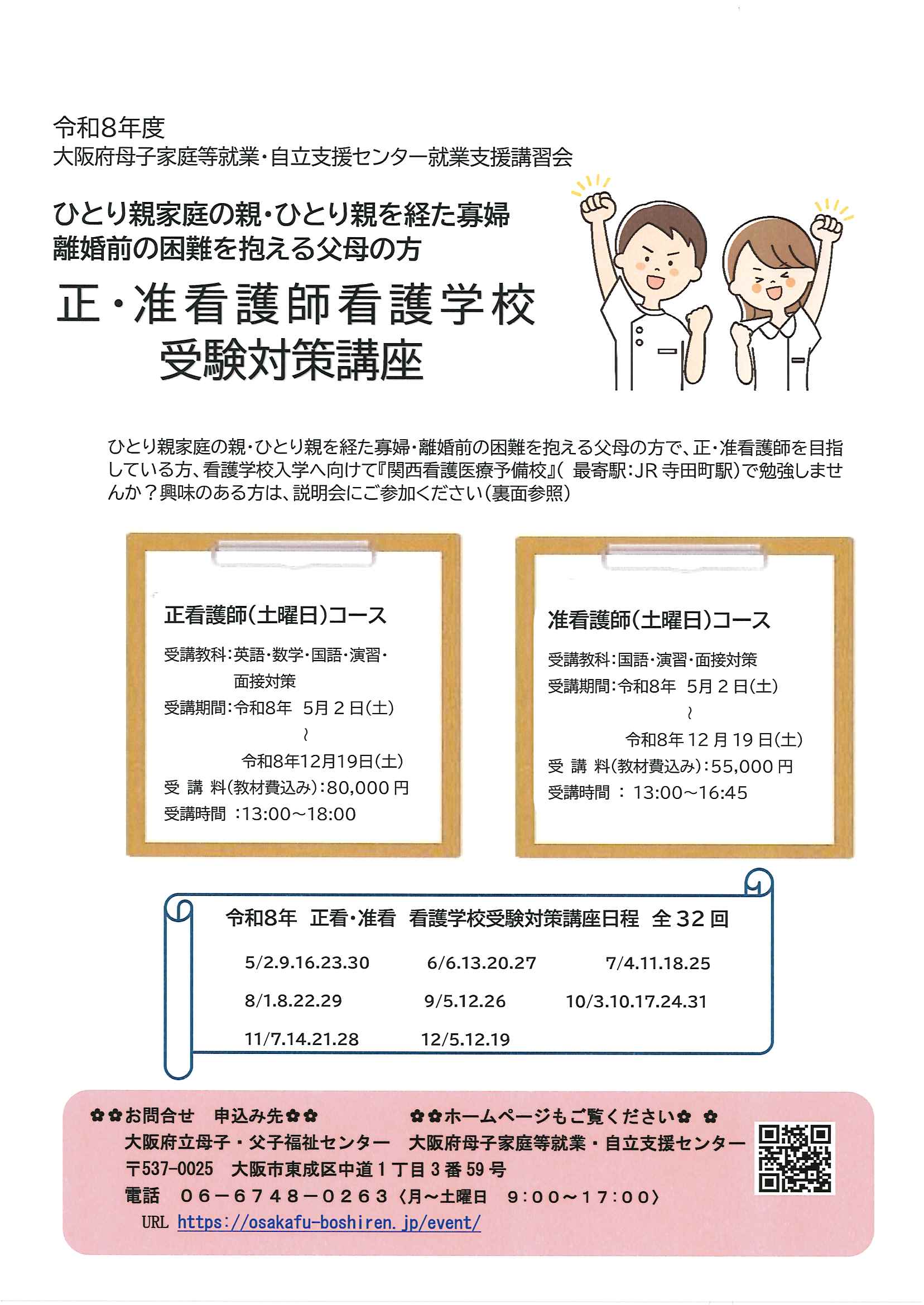 令和8年度 ひとり親家庭等 正・准看護学校受験対策講座 について