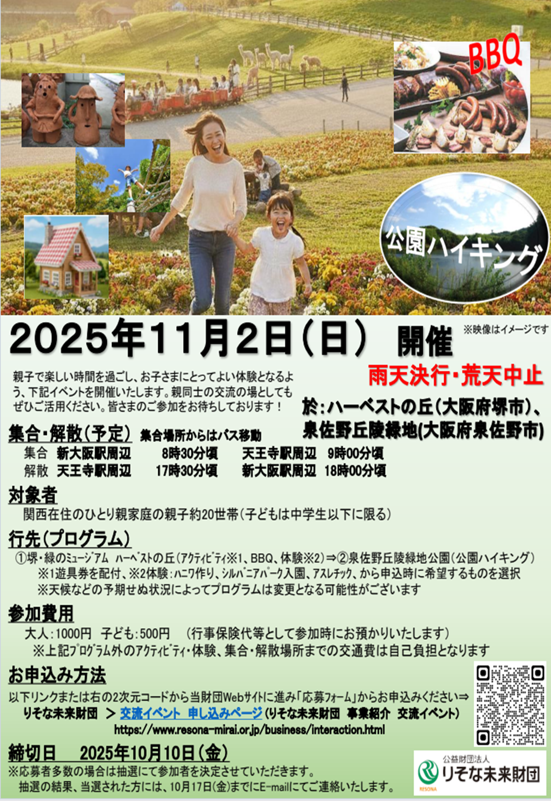 りそな未来財団ひとり親家庭向け親子交流イベントのお知らせ