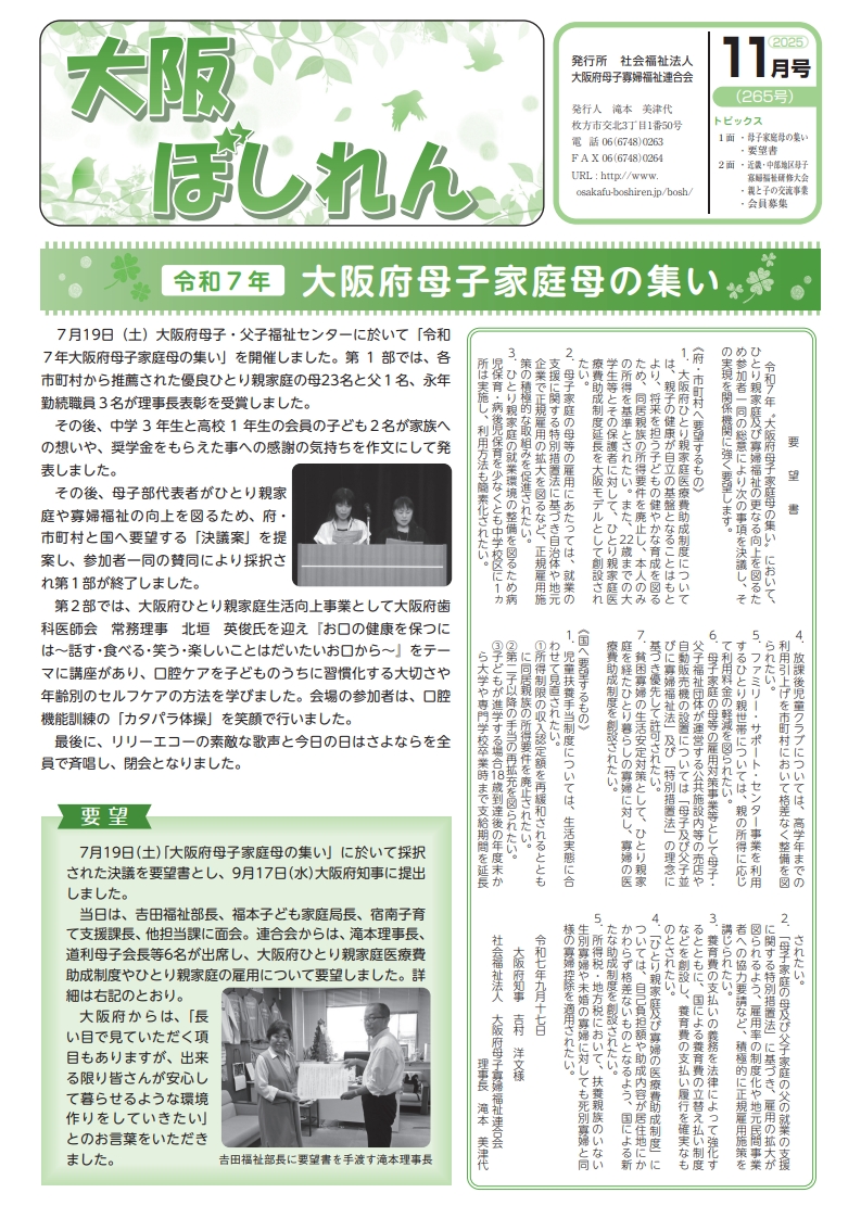広報 『大阪ぼしれん』 2025年11月号をアップしました!