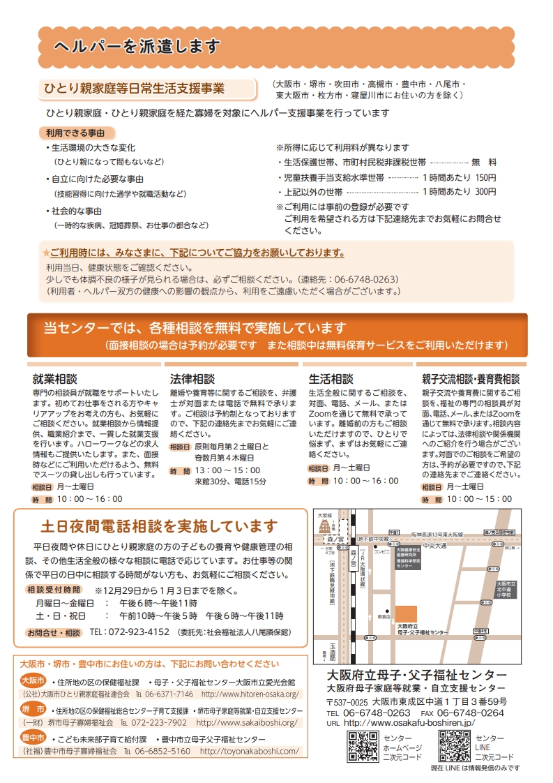 大阪府ひとり親家庭等日常生活支援事業のご案内
