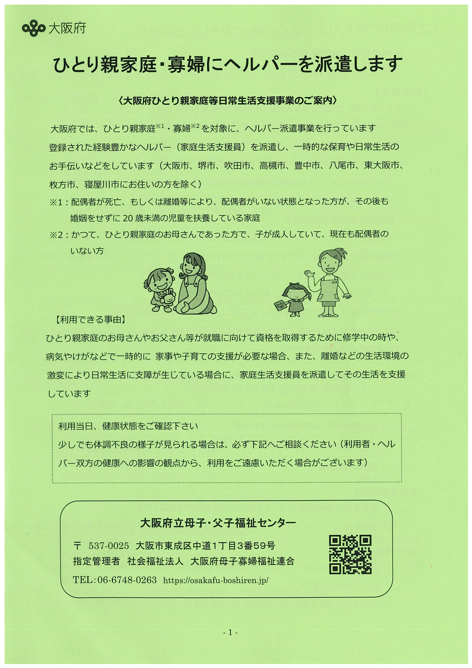 大阪府ひとり親家庭等日常生活支援事業のご案内