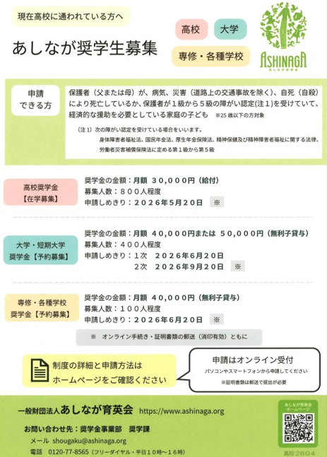 あしなが奨学生募集のお知らせ 詳細は こちら から