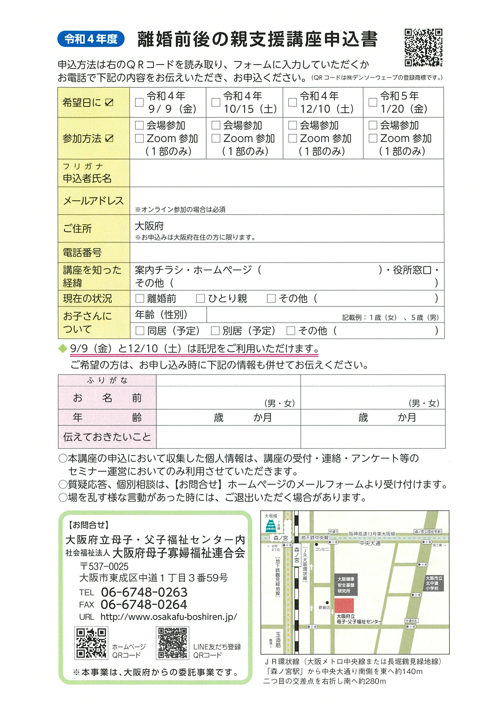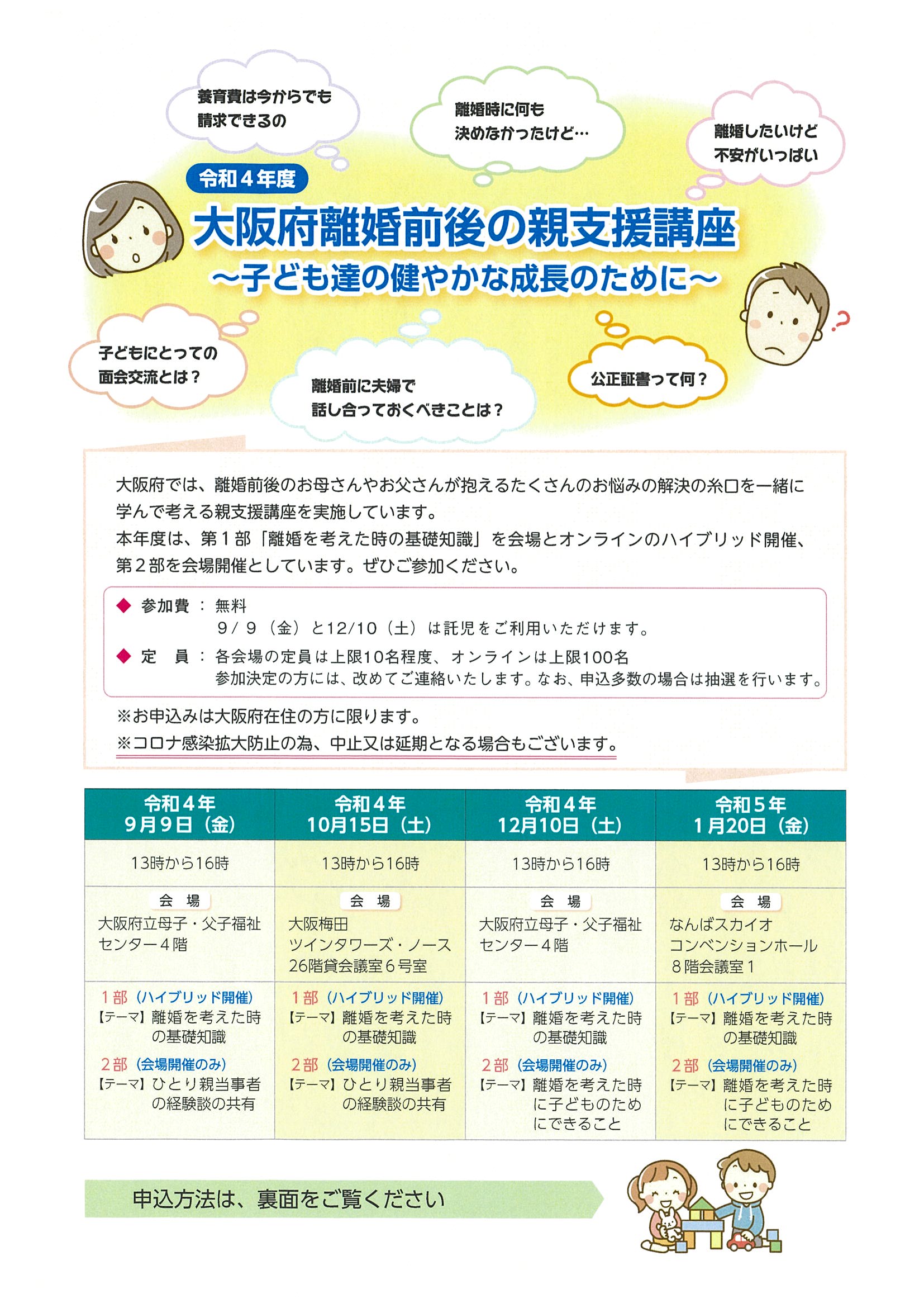 令和4年度 大阪府離婚前後の親支援講座参加者募集