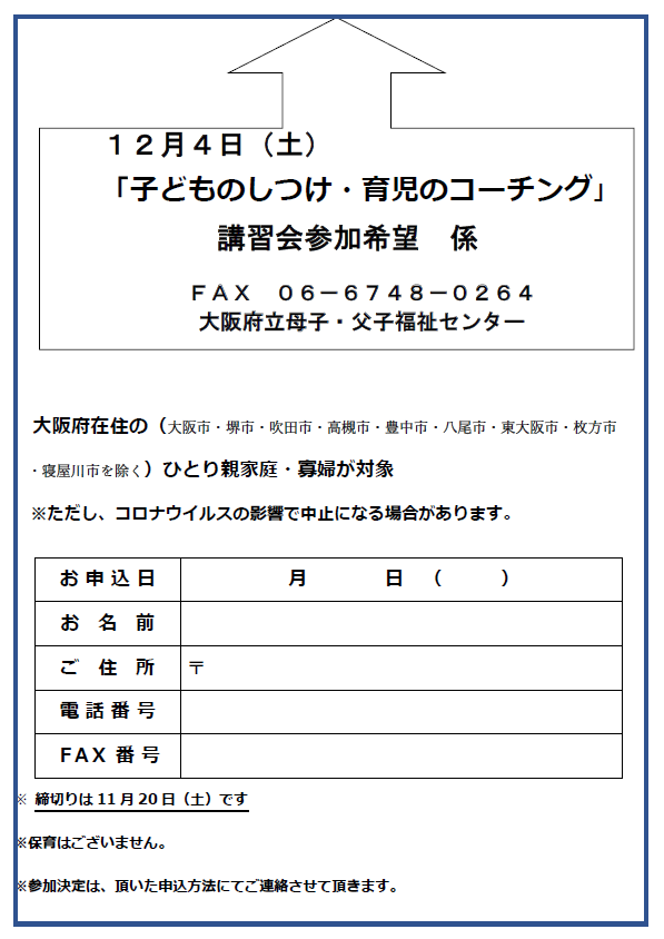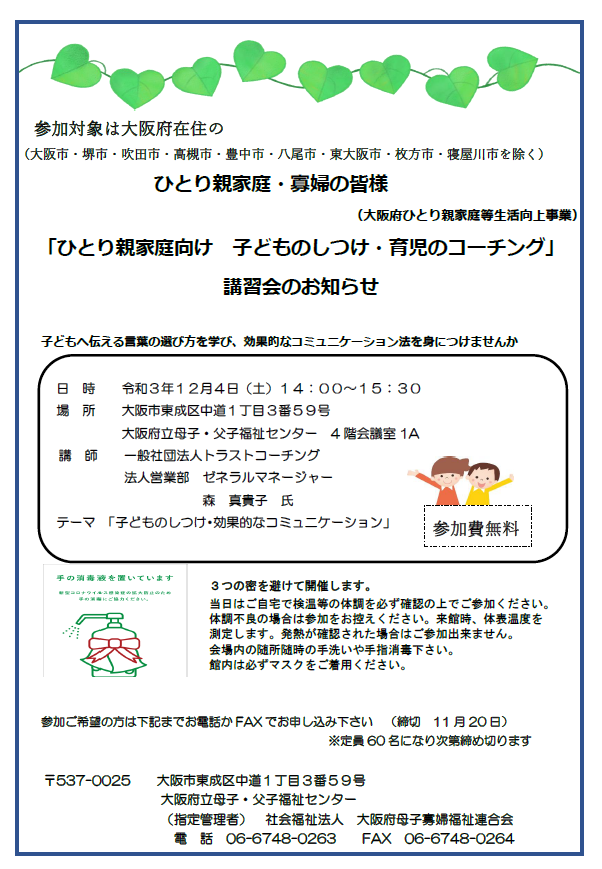 令和3年度「大阪府家庭生活支援員(子育て支援)研修」のお知らせ